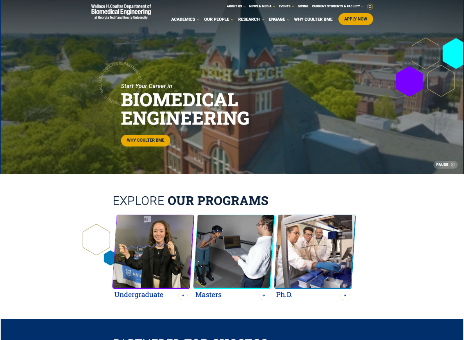 “This website redesign is a direct reflection of our department’s strategic plan to remain one of the top biomedical engineering programs in the country,” said Dr. Alyssa Panitch, Chair of the Wallace H. Coulter Department of Biomedical Engineering. “By focusing on clarity, accessibility, and engagement, we’re not only showcasing our world-class research and education but also strengthening connections with the broader biomedical community.”