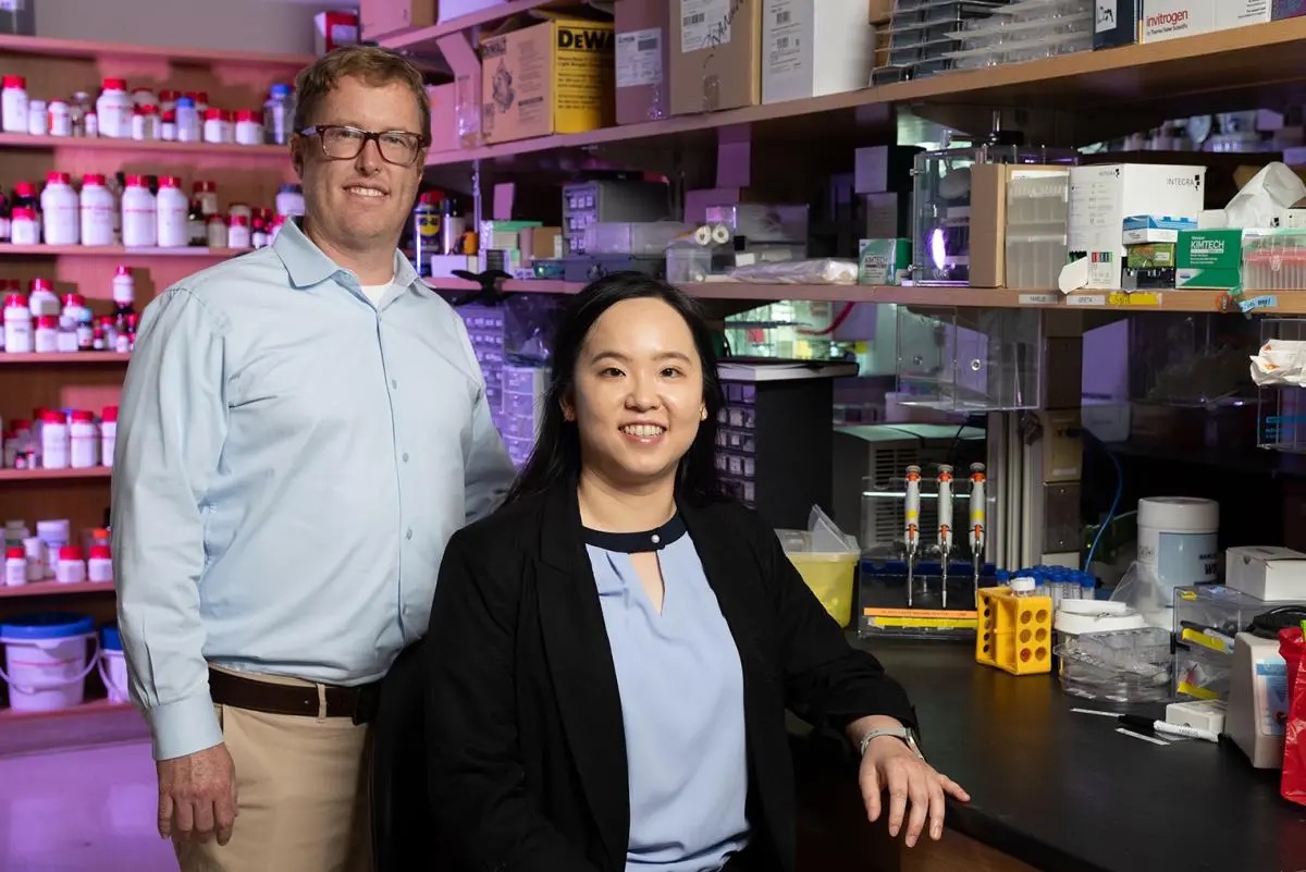 Brandon Dixon, left, and Shao-Yun Hsu are working to improve lymph node transplant surgery, a delicate procedure Hsu spent years training to perform as a microsurgeon in Taiwan. (Photo: Candler Hobbs)
