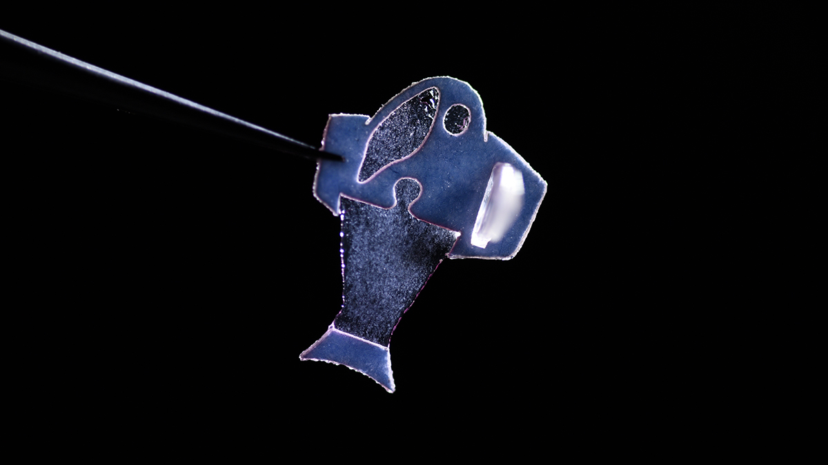 This artificial “biohybrid” fish is made with commercially available human heart cells and swims by recreating the muscle contractions of a pumping heart. Published in Science, the system brings engineers closer to complex artificial pumps that could grow with young patients. It also provides a new platform for studying heart rhythm problems. (Photo: Michael Rosnach, Keel Yong Lee, Sung-Jin Park, Kevin Kit Parker)