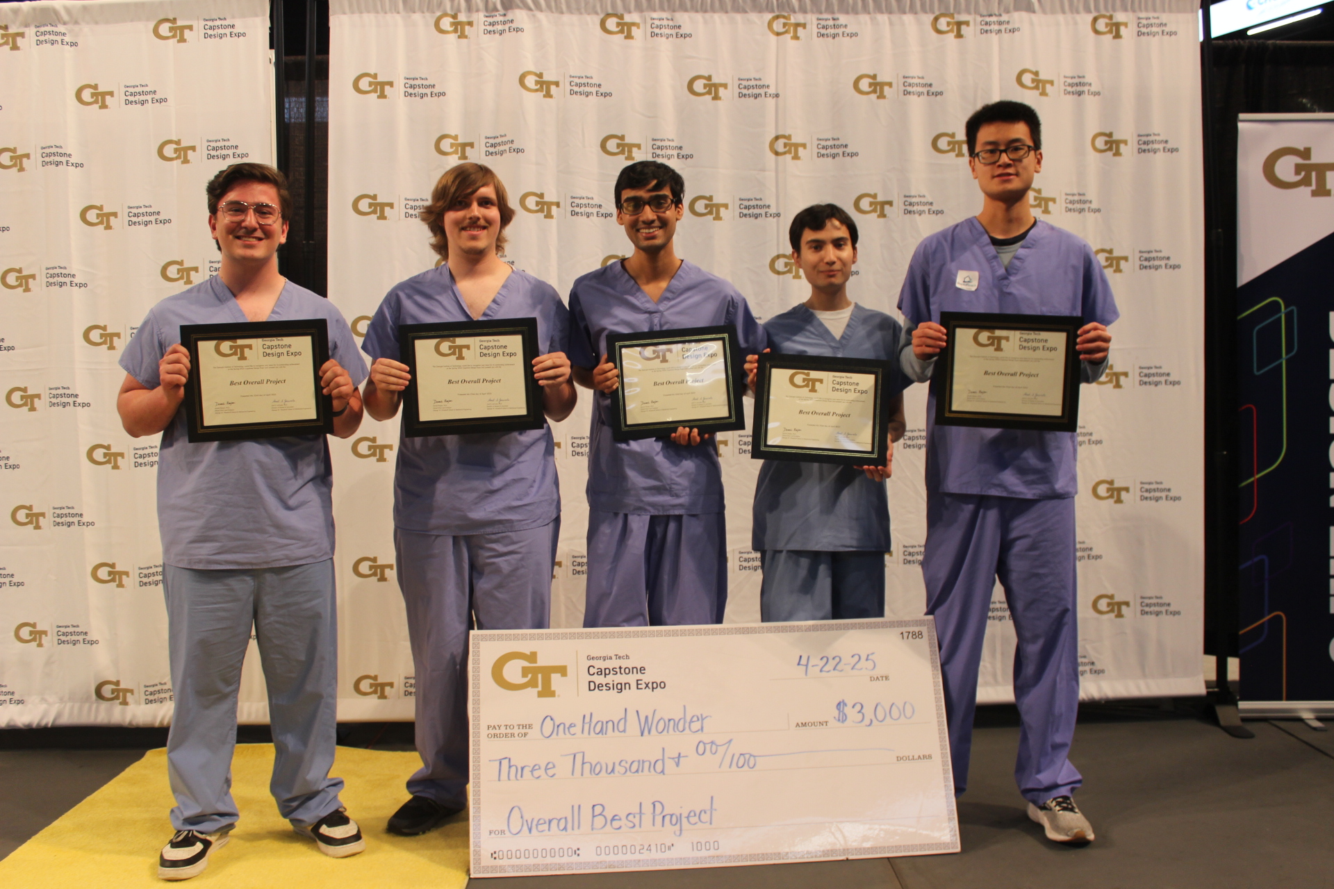 Team One-Hand Wonder earned the best overall project at the Spring 2025 Capstone Expo on April 22, the 4th consecutive semester Coulter BME has won first place.